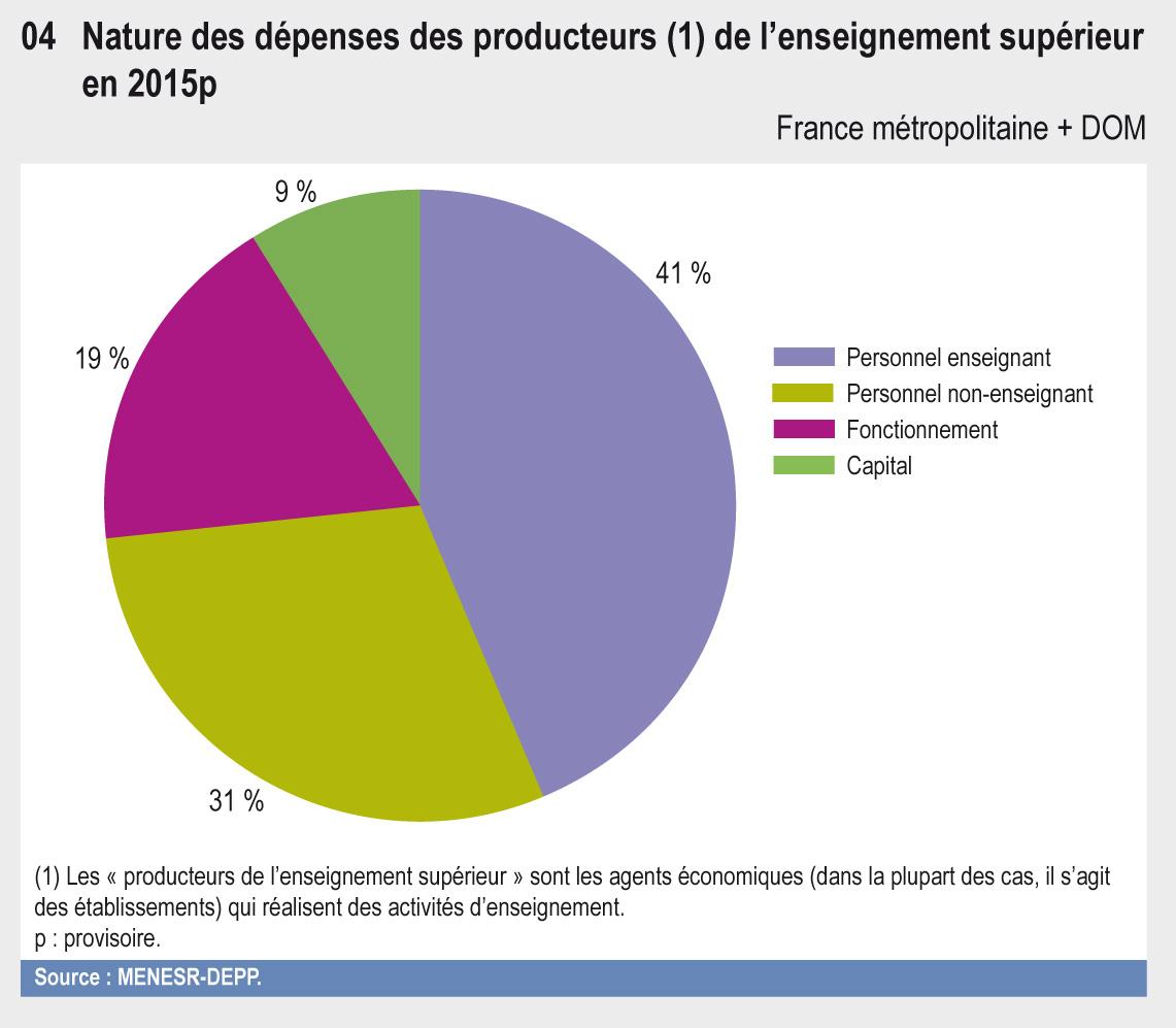 01.04 Nature des dépenses des producteurs 1 de l'enseignement supérieur en 2015p