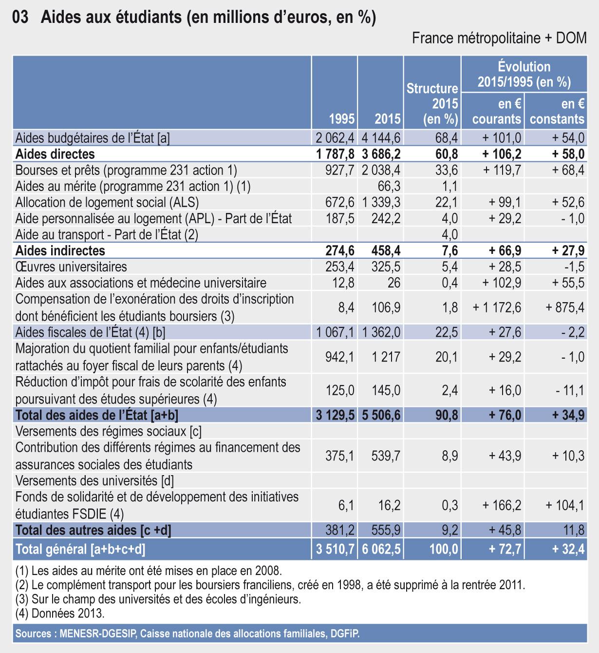 03.03 Aides aux étudiants (en millions d'euros, en %)