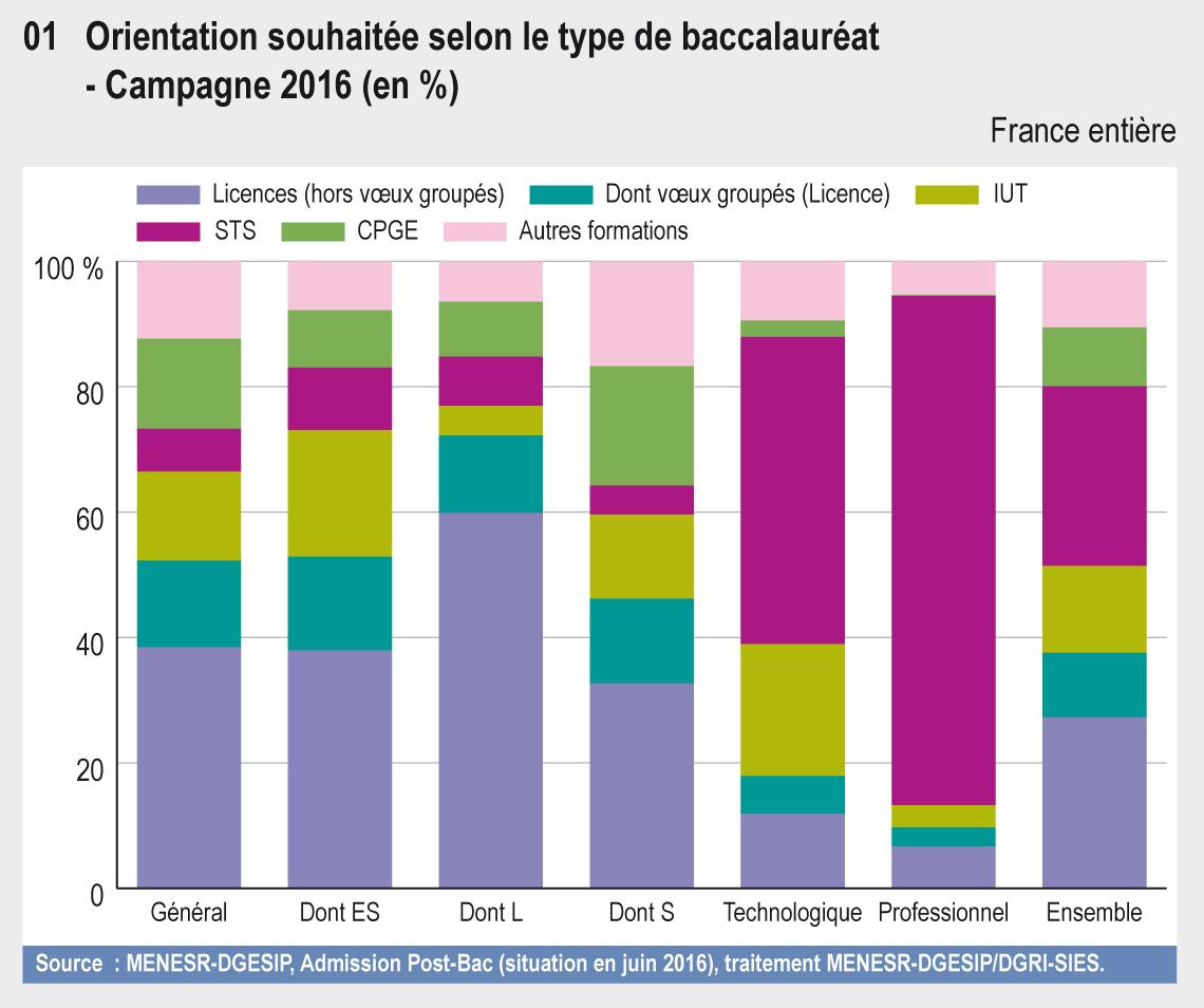 08.01 Orientation souhaitée selon le type de baccalauréat - Campagne 2016 (en %)