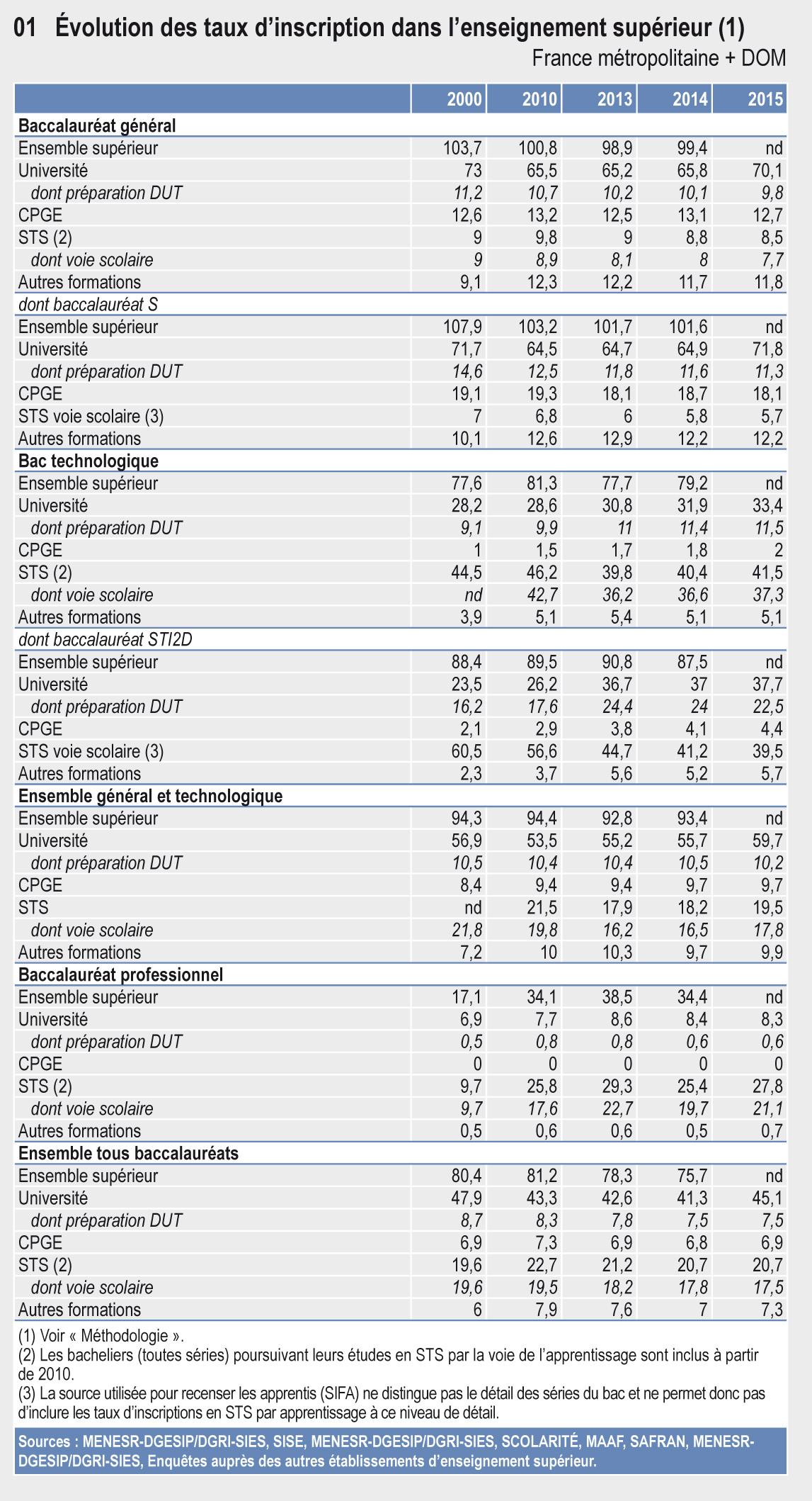 10.01 Évolution des taux d'inscription dans l'enseignement supérieur 1
