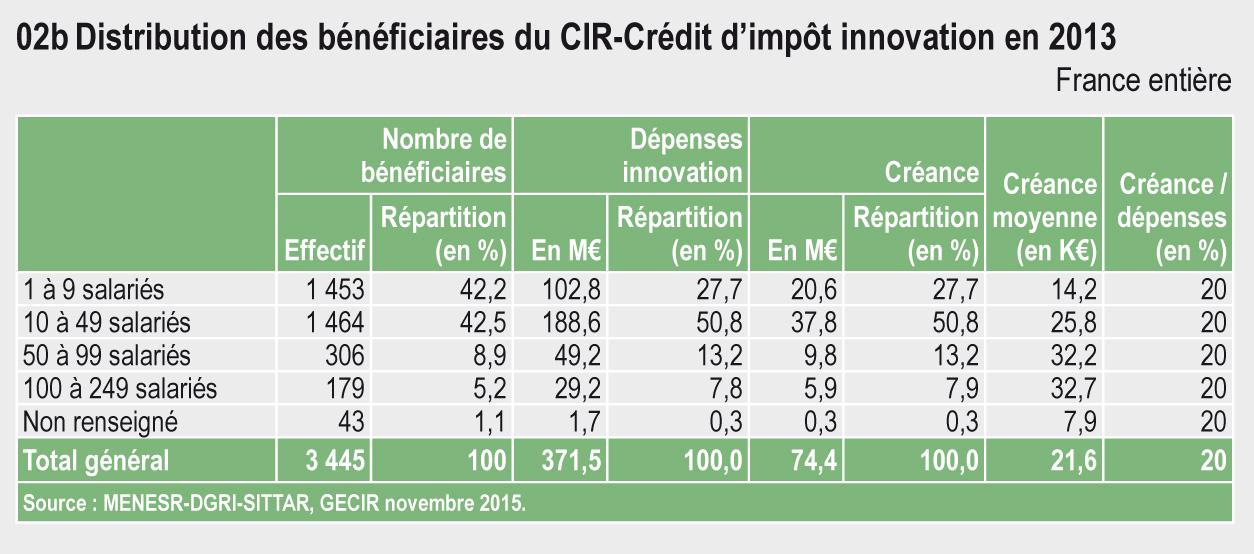 31.02b Distribution des bénéficiaires du CIR-Crédit d'impôt innovation en 2013