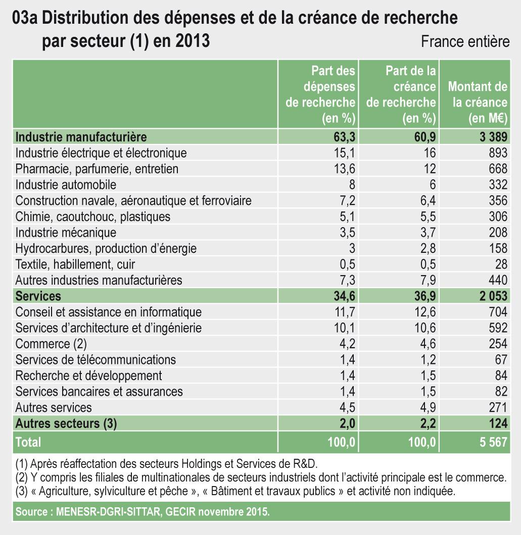 31.03a Distribution des dépenses et de la créance de recherche par secteur 1 en 2013