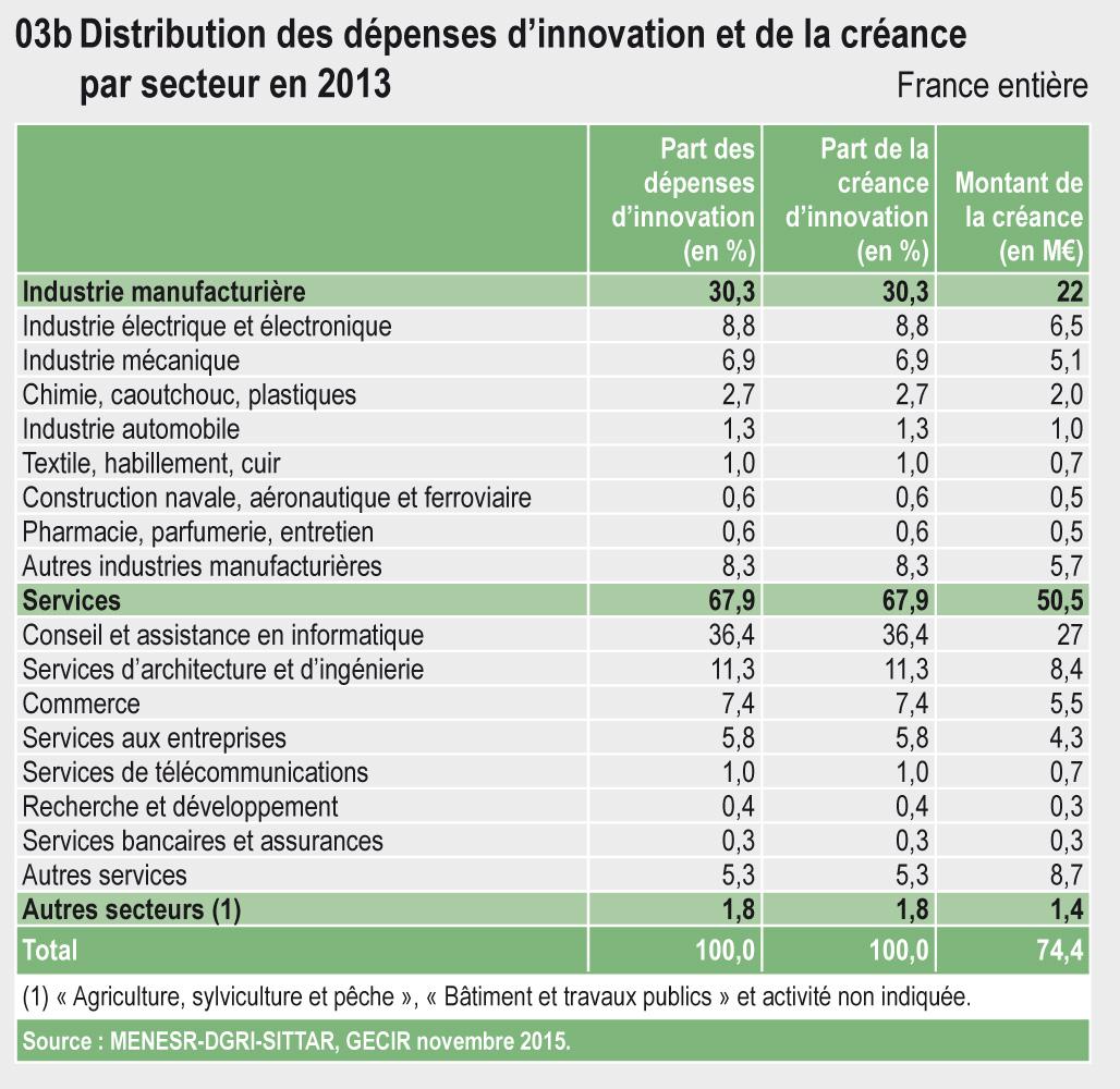 31.03b Distribution des dépenses d’innovation et de la créance par secteur en 2013