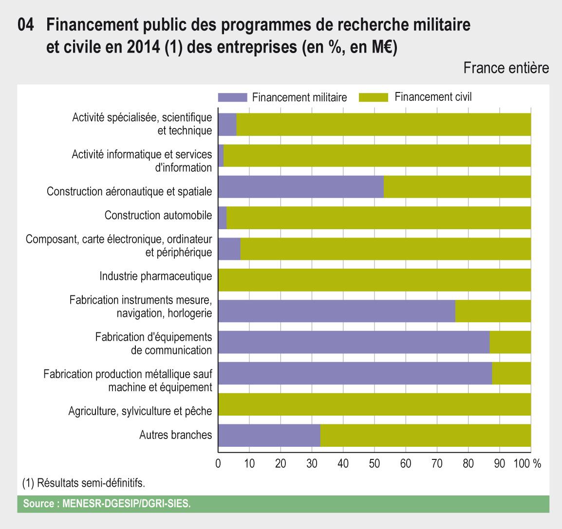 34.04 Financement public des programmes de recherche militaire et civile en 2014 1 des entreprises (en %, en M€)