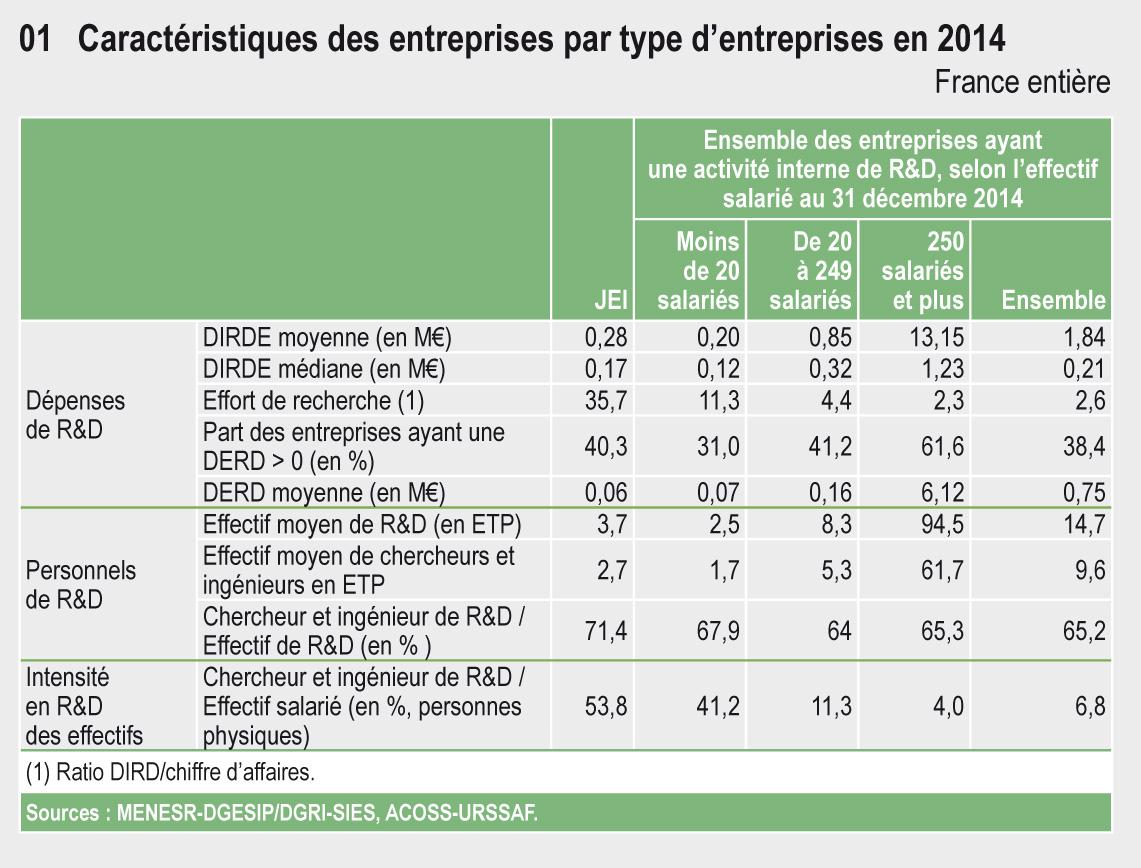 Le statut de jeune entreprise innovante (JEI) a été créé pour favoriser la création et le développement des PME qui conduisent des travaux de R&D. En 2014, leurs dépenses intérieures de R&D s’élèvent à 916 millions d’euros, en hausse de 10 % par rapport à 2013. Elles se concentrent essentiellement dans des branches de services.