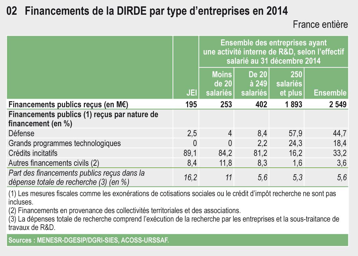 40.02 Financements de la DIRDE par type d'entreprises en 2014