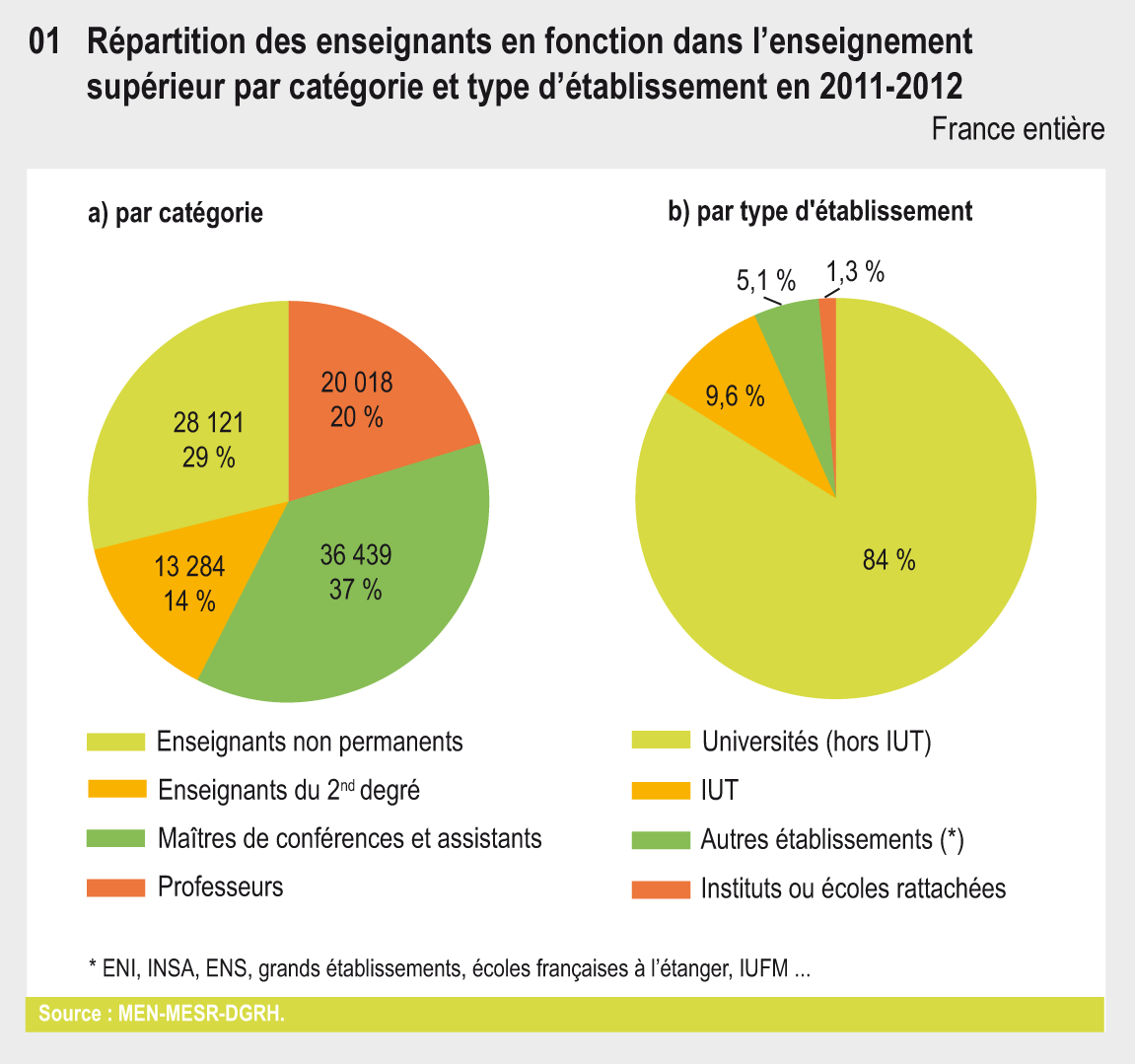 04.01a Répartition des enseignants en fonction dans l'enseignement supérieur par catégorie en 2011-2012