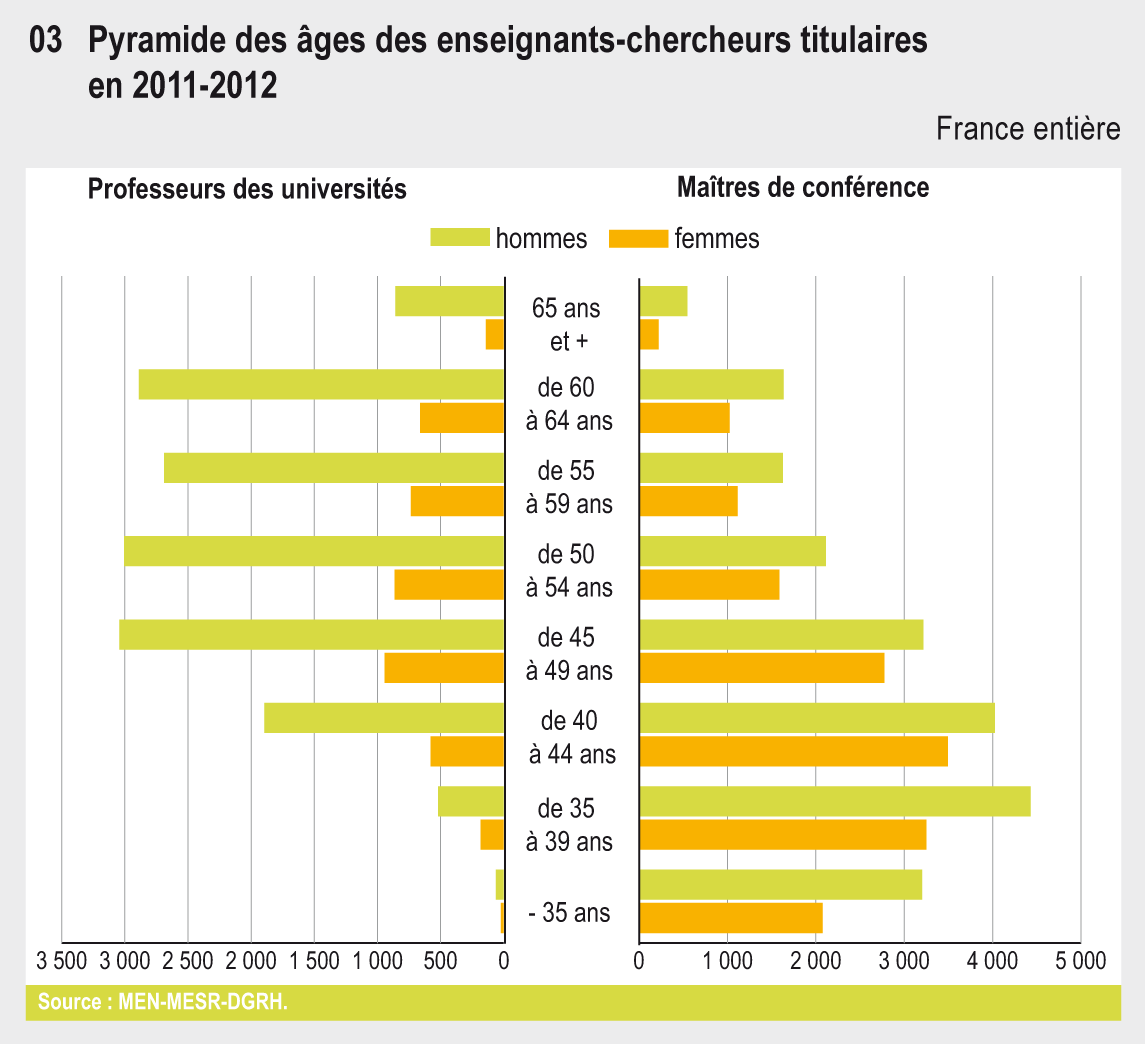 04.03a Pyramide des âges des professeurs des universités en 2011-2012