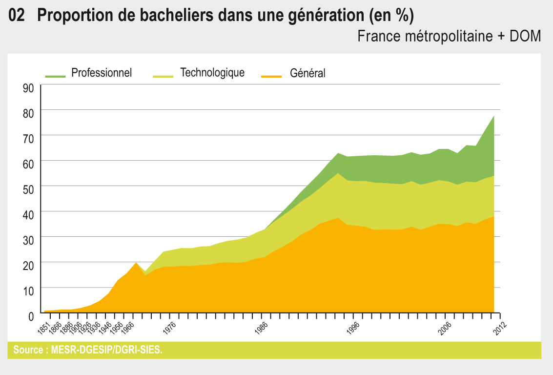 08.02 Proportion de bacheliers dans une génération (en %)
