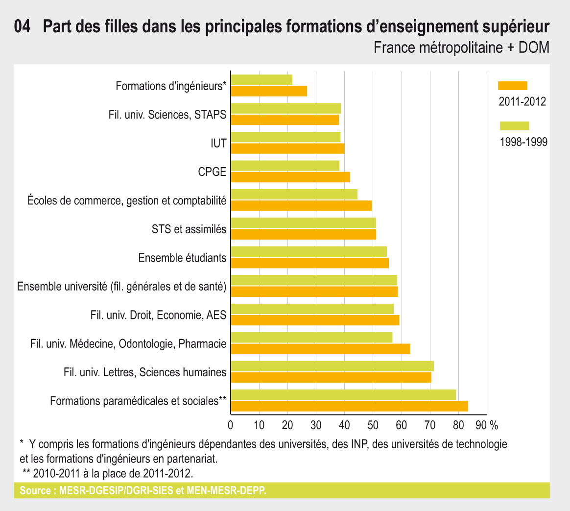 11.04 Part des filles dans les principales formations d'enseignement supérieur