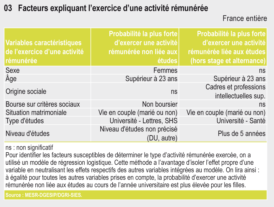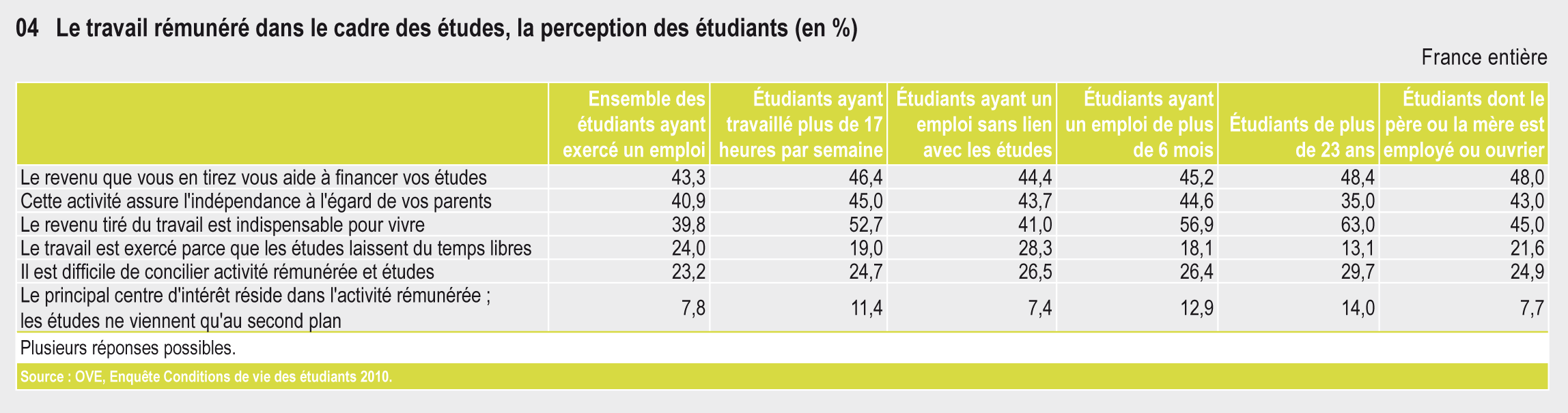Cette fiche a été actualisée. Consultez la fiche 14. la vie étudiante : le travail rémunéré dans L'état de l'Enseignement supérieur et de la Recherche en France n°7 - avril 2014