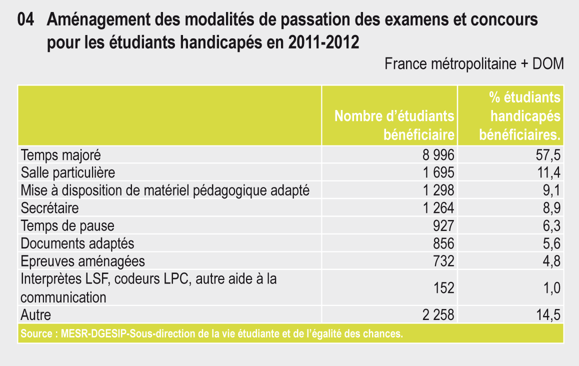 24.04 Aménagement des modalités de passation des examens et concours pour les étudiants handicapés en 2011-2012