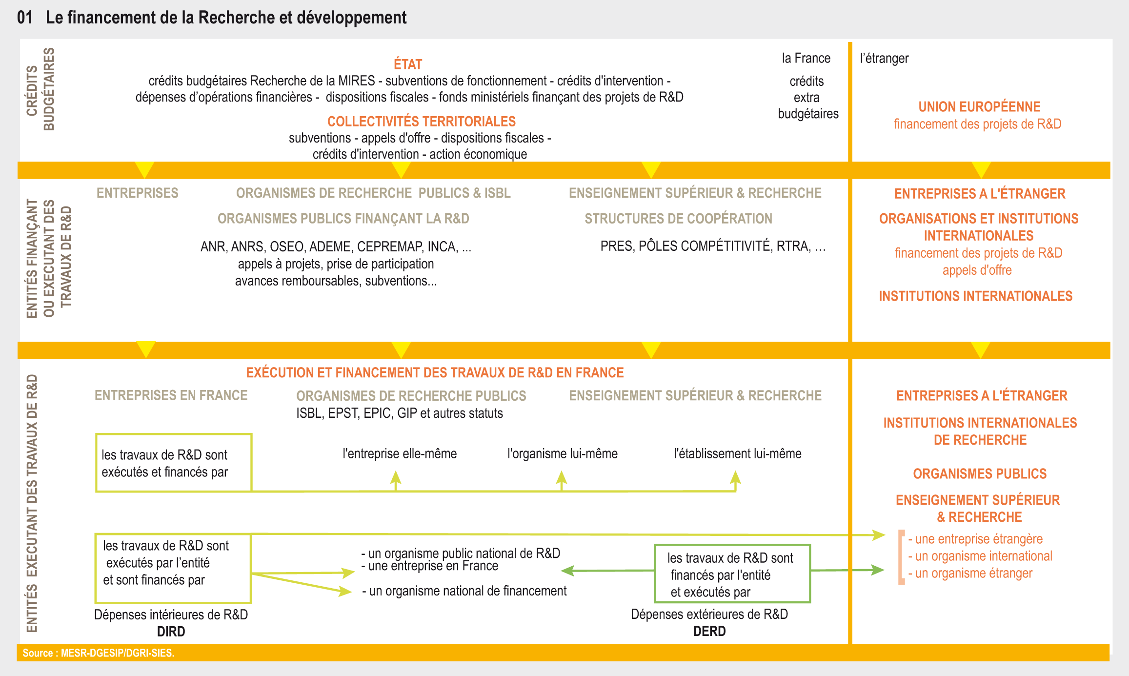 L’effort de R&D d’un pays se mesure par deux indicateurs, de nature différente, portant l’un sur l’exécution des travaux de R&D, l’autre sur leurs financements.