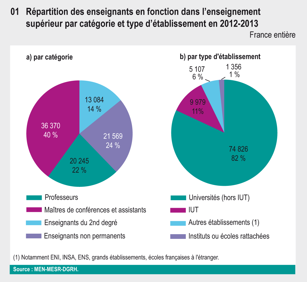 Cette fiche a été actualisée. Consultez la fiche 04. les personnels enseignants de l'enseignement supérieur public sous tutelle du MENESR dans L'état de l'Enseignement supérieur et de la Recherche en France n°10 - Avril 2017