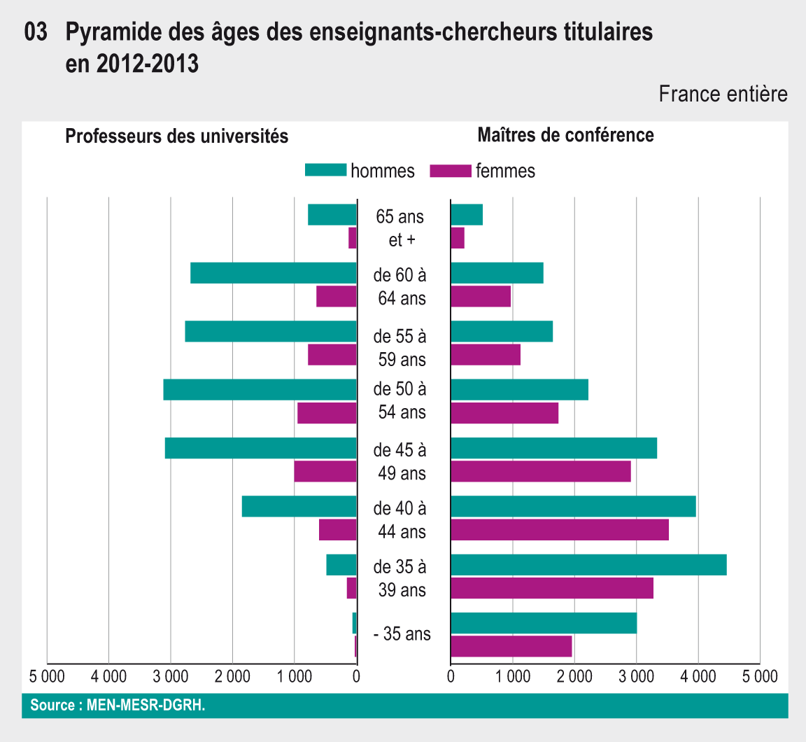 04.03a Pyramide des âges des professeurs des universités en 2012-2013