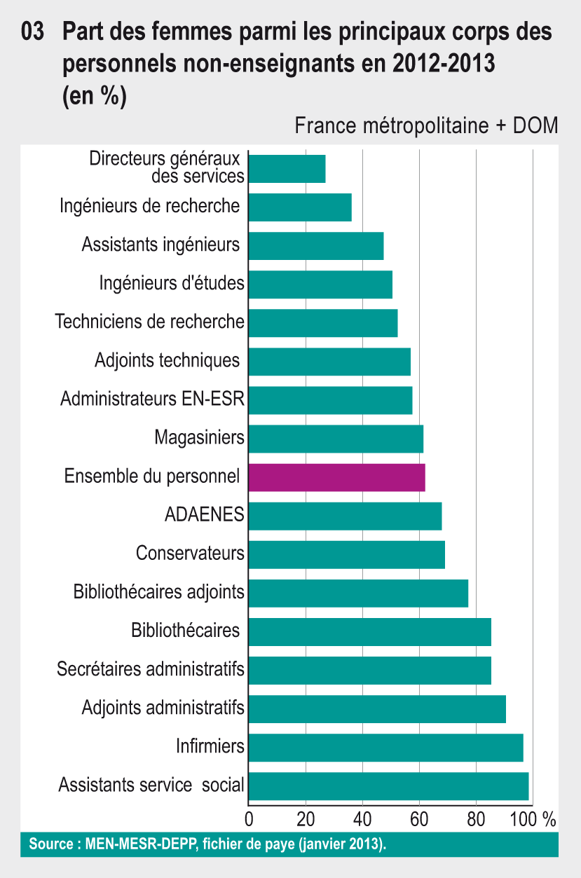 05.03 Part des femmes parmi les principaux corps des personnels non-enseignants en 2012-2013 (en %)