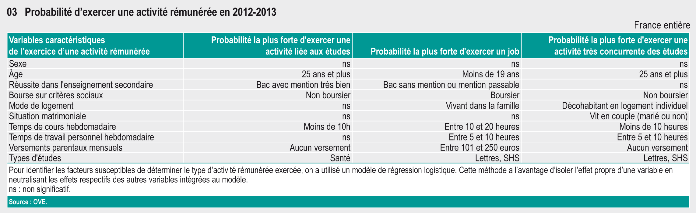 14.03 Probabilité d'exercer une activité rémunérée en 2012-2013