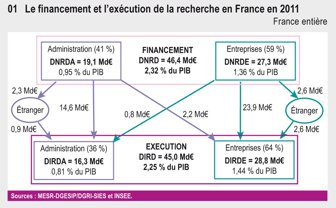 33.01 Le financement et l'exécution de la recherche en France en 2011