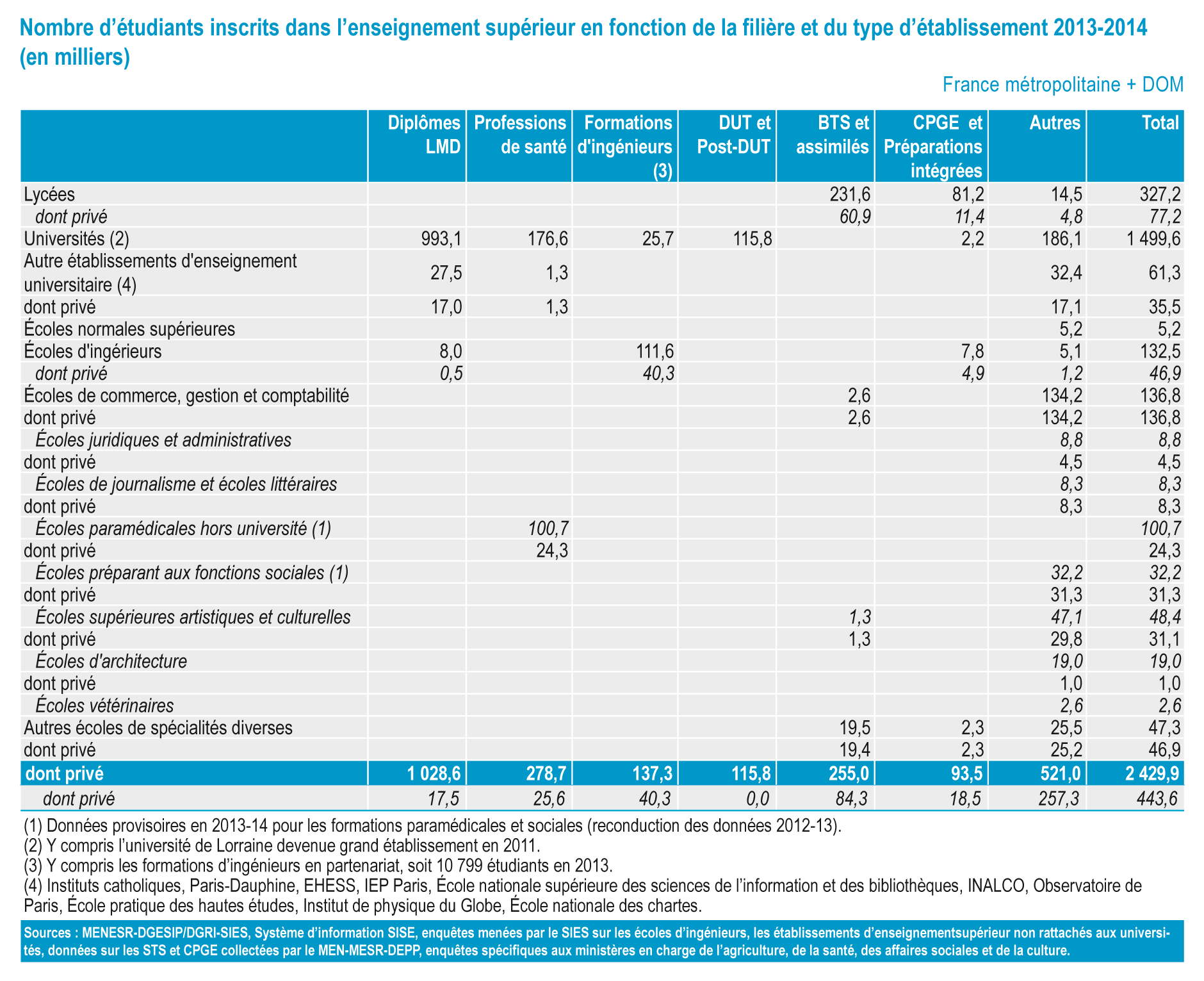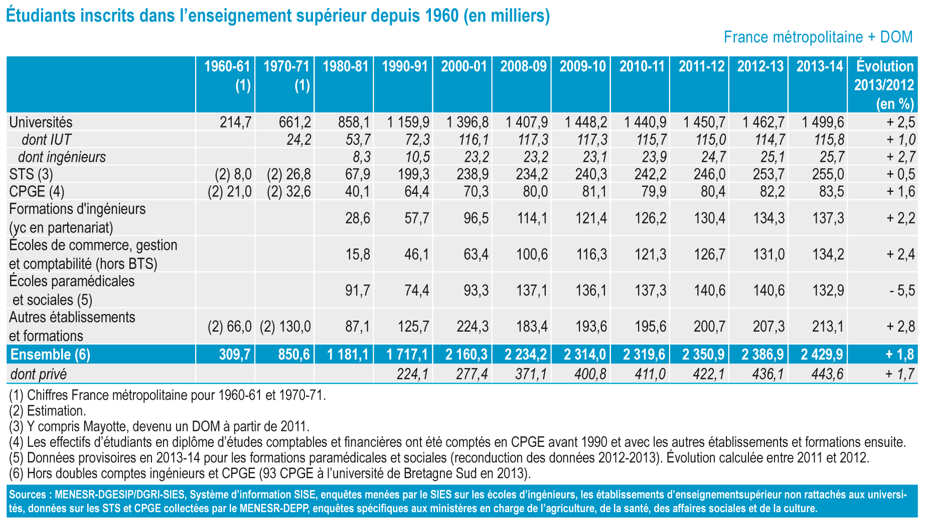 Etat de l'enseignement supérieur et de la rechercheHigher education & research in France, facts and figures 8th edition - November 2015A1 - students enrolled in higher education