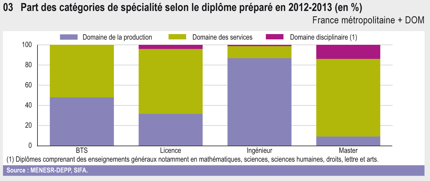 12.03 Part des catégories de spécialité selon le diplôme préparé en 2012-2013 (en %)