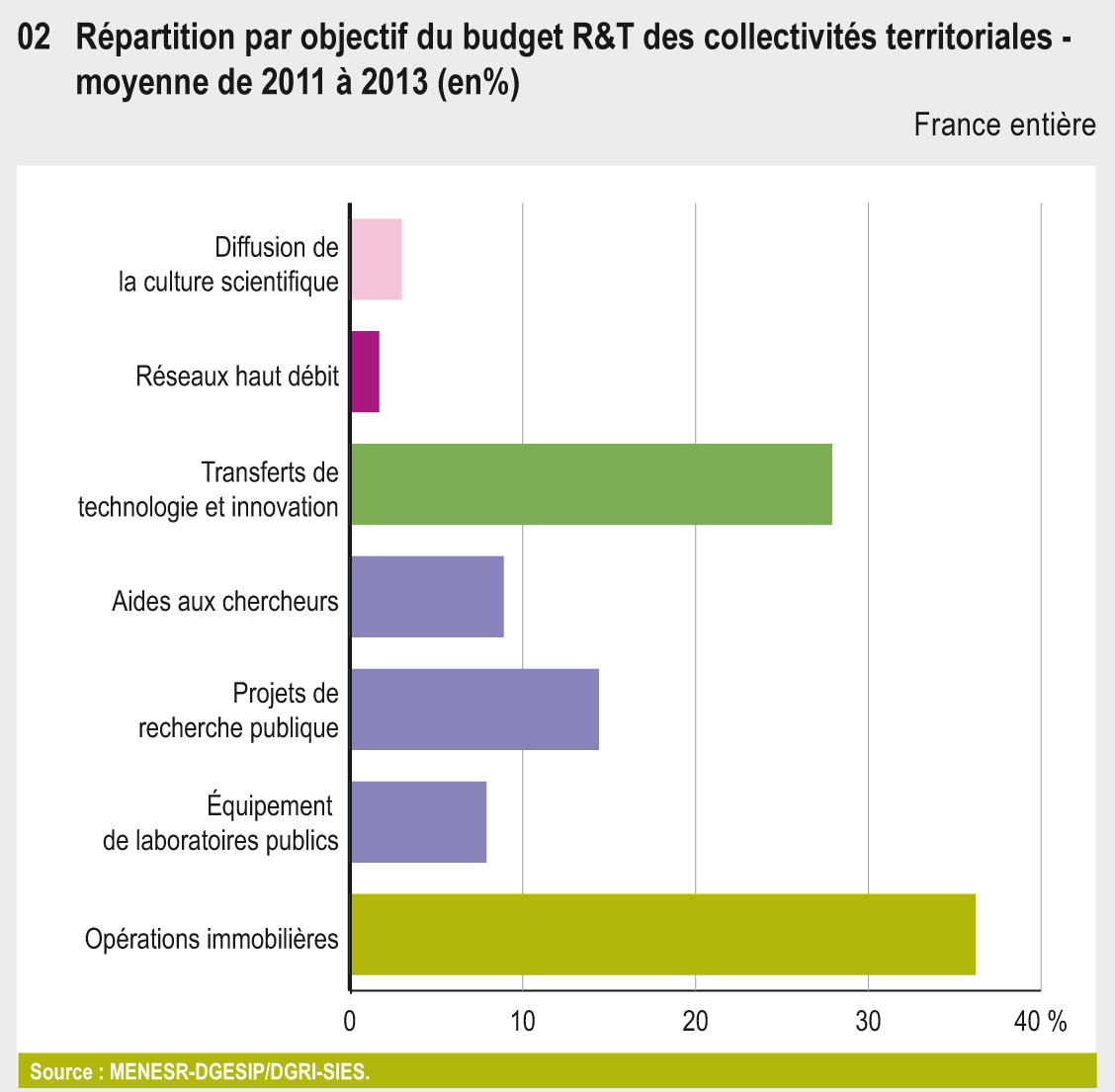 32.02 Répartition par objectif du budget R&T des collectivités territoriales - Moyenne de 2011 à 2013 (en %)