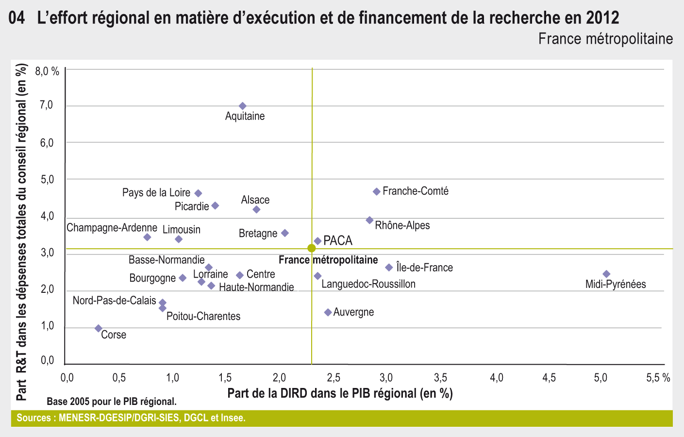 32.04 L'effort régional en matière d'exécution et de financement de la recherche en 2012