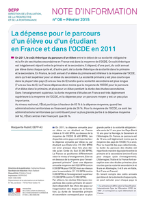 Note d'information DEPP 15.06 - La dépense pour le parcours d'un élève ou d'un étudiant en France et dans l'OCDE en 2011 - Marguerite Rudolf - February 2015 Dans l’enseignement supérieur, la durée moyenne d’études en France est très légèrement supérieure à la moyenne de l’OCDE, et la dépense pour un parcours moyen y est un peu plus importante.