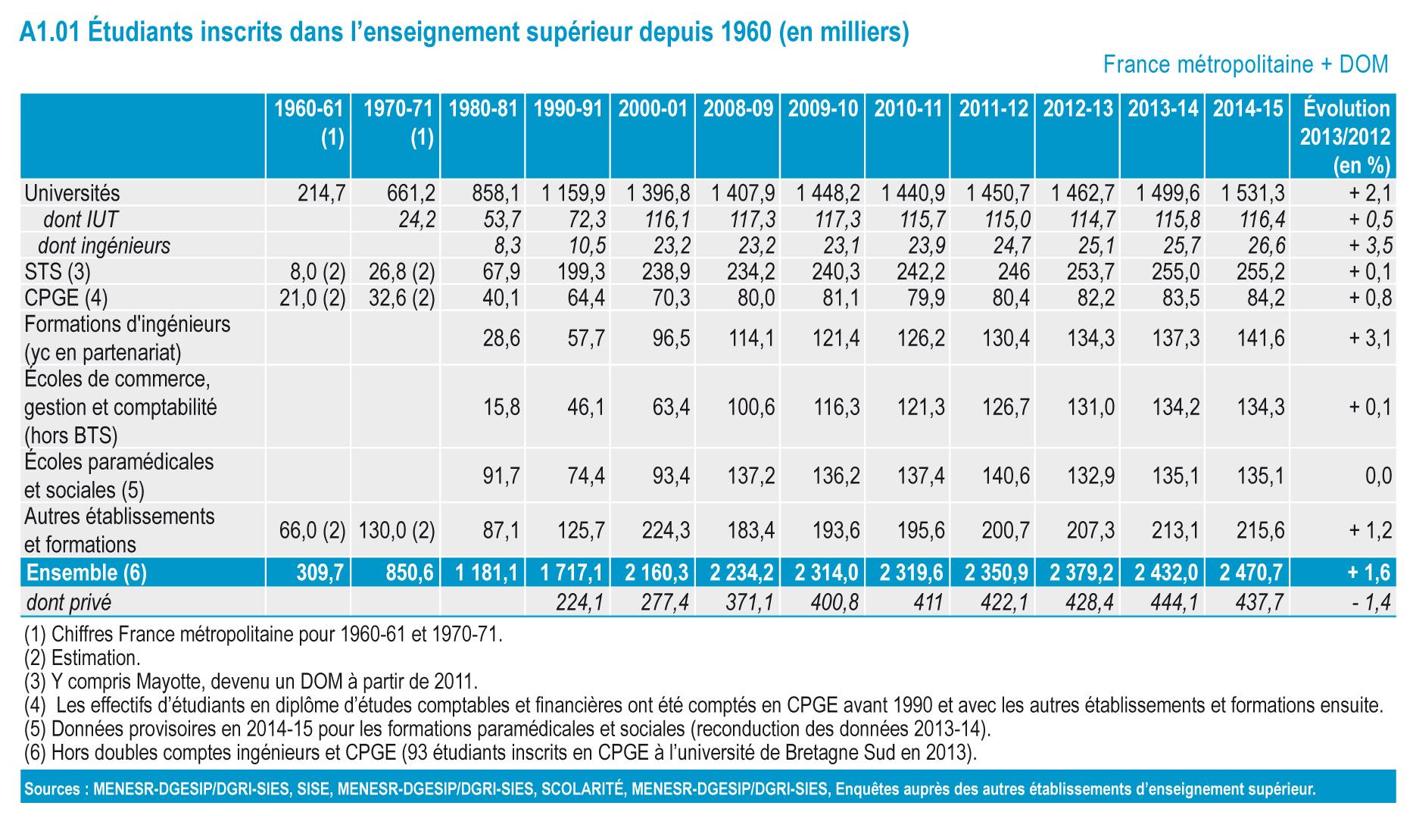 Etat de l'enseignement supérieur et de la rechercheHigher education & research in France, facts and figures 9th edition - November 2016A1 - students enrolled in higher education