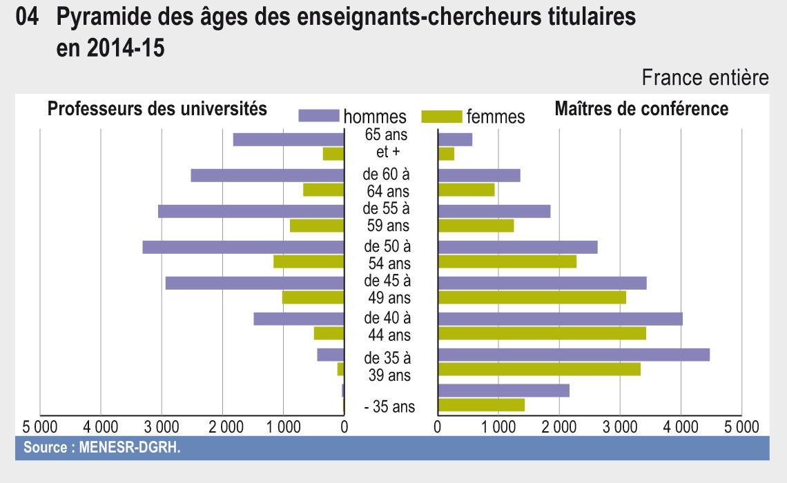 04.04 Pyramide des âges des enseignants-chercheurs titulaires en 2014-15