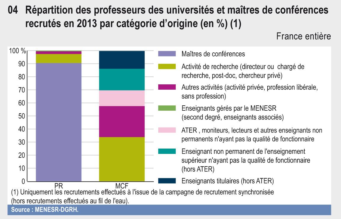 BIDEAULT Marc. Qualification et recrutement des enseignants-chercheurs. In : État de l'Enseignement supérieur et de la Recherche en France - 50 indicateurs [en ligne]. KABLA-LANGLOIS Isabelle (dir.). Paris : Ministère de l'Éducation nationale, de l'Enseignement supérieur et de la Recherche, 2016 (9e éd.), fiche 06 [Consulté le 13/01/2026]. ISBN 978-2-11-151570-3. Disponible à l'adresse : https://publication.enseignementsup-recherche.gouv.fr/eesr/9/EESR9_ES_06-qualification_et_recrutement_des_enseignants_chercheurs.php