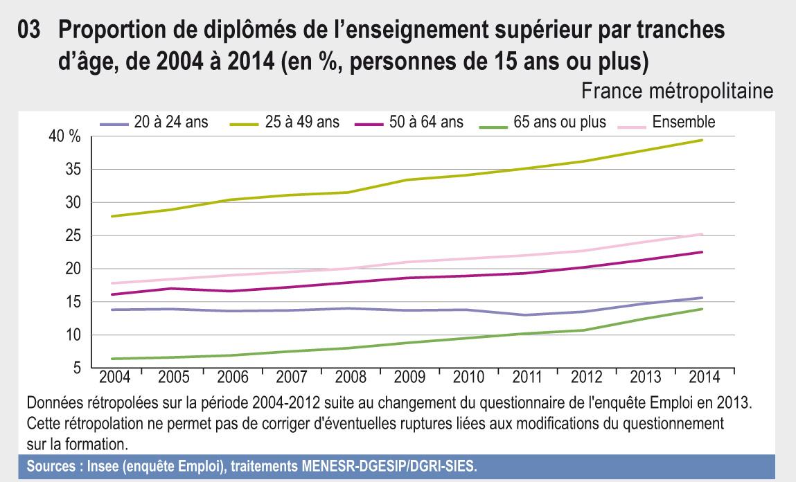 Données rétropolées sur la période 2004-2012 suite au changement du questionnaire de l'enquête Emploi en 2013. Cette rétropolation ne permet pas de corriger d'éventuelles ruptures liées aux modifications du questionnement sur la formation.