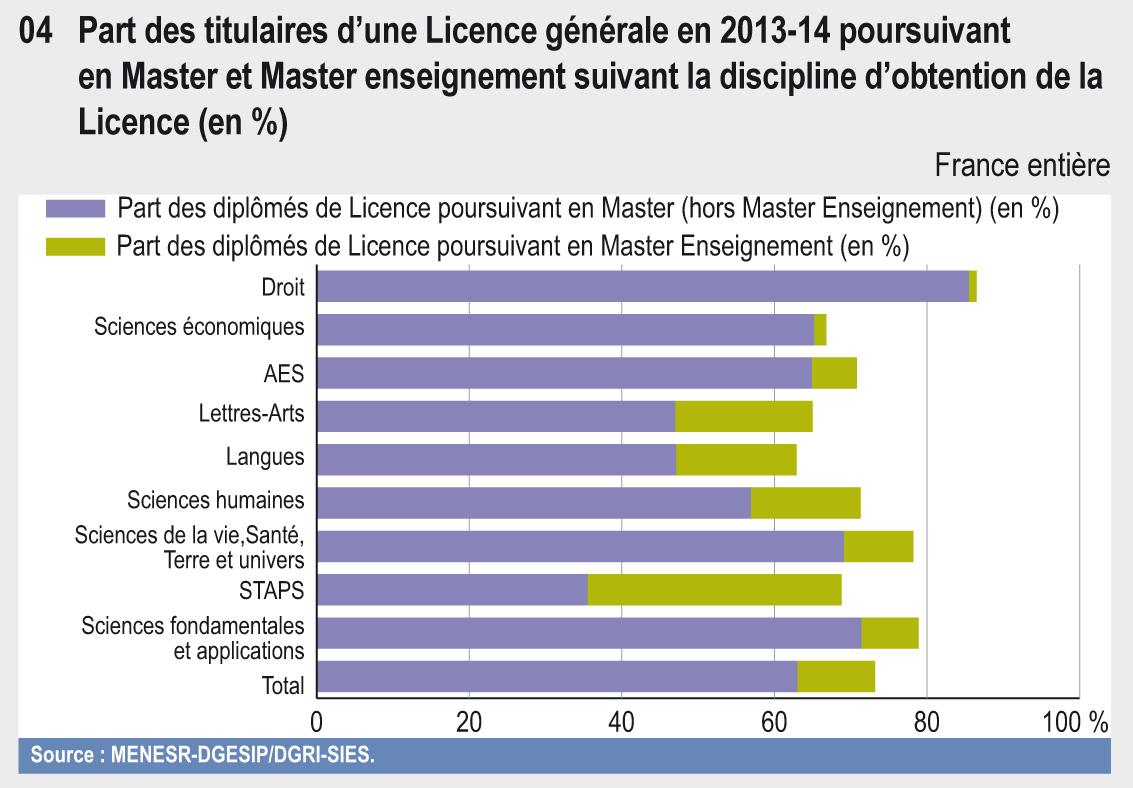 Part des titulaires d'une Licence générale en 2013-14 poursuivant en Master et Master enseignement
