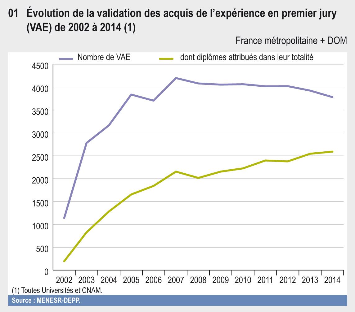 20.01 Évolution de la validation des acquis de l'expérience en premier jury (VAE) de 2002 à 2014 1
