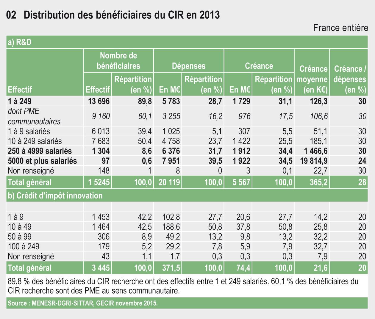 32.02b Distribution des bénéficiaires du CIR-Crédit d'impôt innovation en 2013