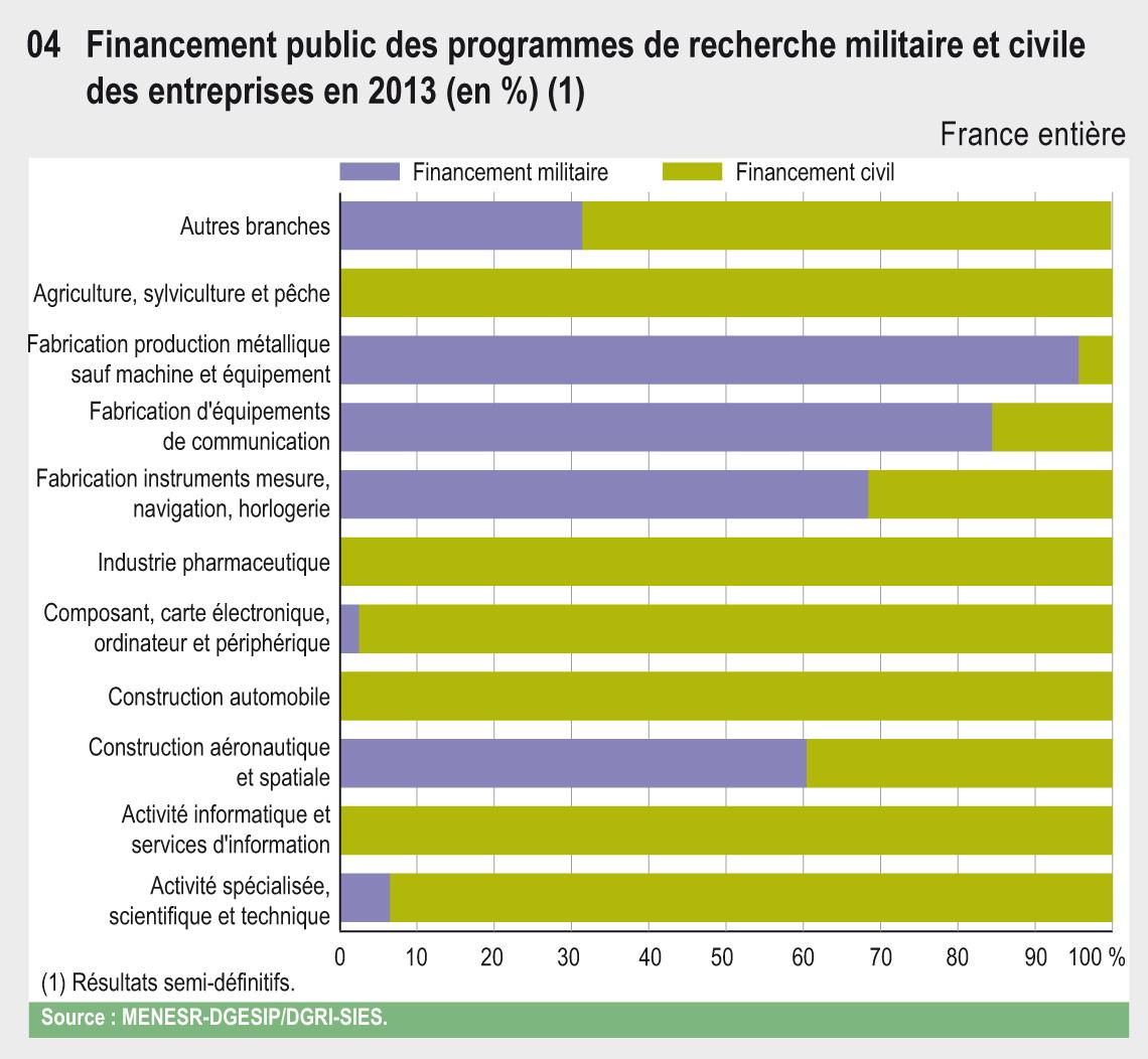 35.04 Financement public des programmes de recherche militaire et civile en 2013 1 des entreprises (en %, en M€)