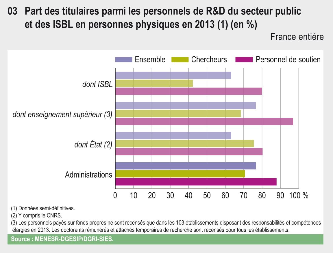 36.03 Part des titulaires parmi les personnels de R&D du secteur public et des ISBL en personnes physiques en 2013 1 (en %)